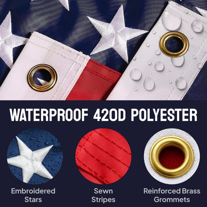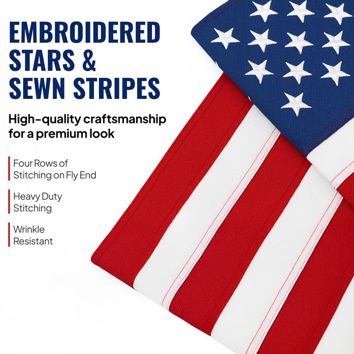 3x5 USA Flag With Embroidered Stars & Sewn Stripes - American Flags for Outside 3x5 – Heavy Duty UV Treated Polyester (Tougher Than Nylon), 70% More Fade Resistant