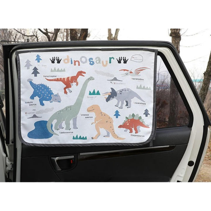 BEBEDECO Magnetic Car Sun Shade Curtain for Side Window – Sun Blocker and UV Protector for Baby, Kids, and Pets – Universal Fit with Built-in Magnets for Steel-Framed Door (Dinosaur)