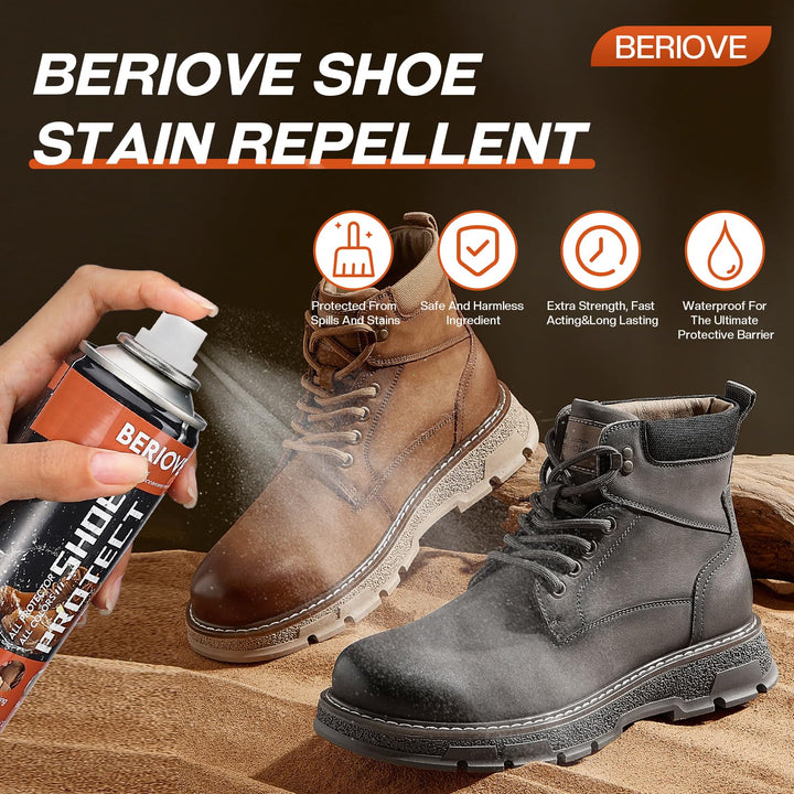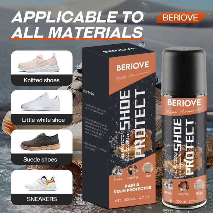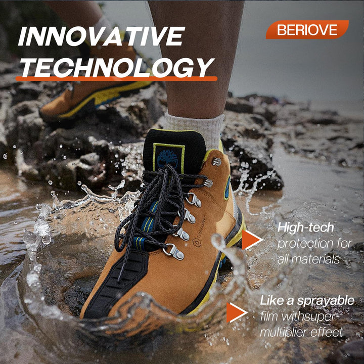 - Powerful & Quick Protection: BERIOVE shoe protector spray uses nano-technology to create ultra-fine particles that penetrate deep into the surface of materials, forming a durable protective barrier, effectively resisting stains and water.