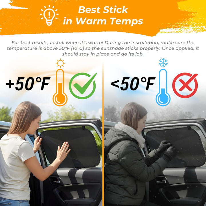 - EASY APPLICATION: Follow instruction on packaging and place the baby car sun shade on your side windows and run your hand across it.