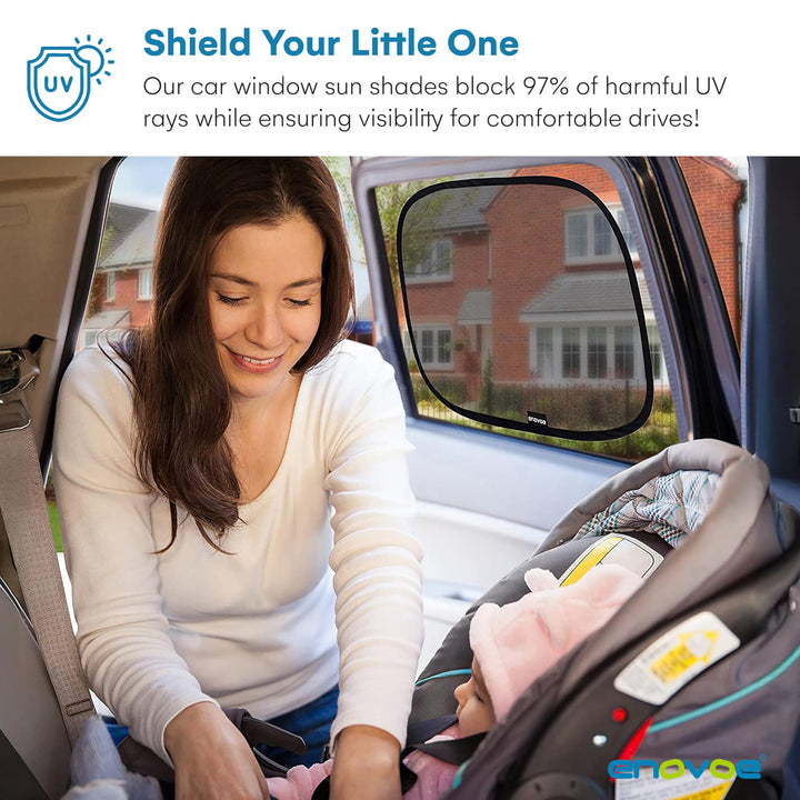 Enovoe Car Window Shades for Baby (4 Pack) - 21"x14" - Sun Shade Blocker, Cling - Glare Shield and UV Rays Protection for Your Child - Side Windows Screens for SUV- Mesh Window Shades for Car Baby